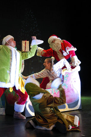 Les lutins sont en train de finir les derniers paquets dans l'atelier pendant que Buggy arrive en avant scène avec un énorme sac rempli des lettres des enfants.